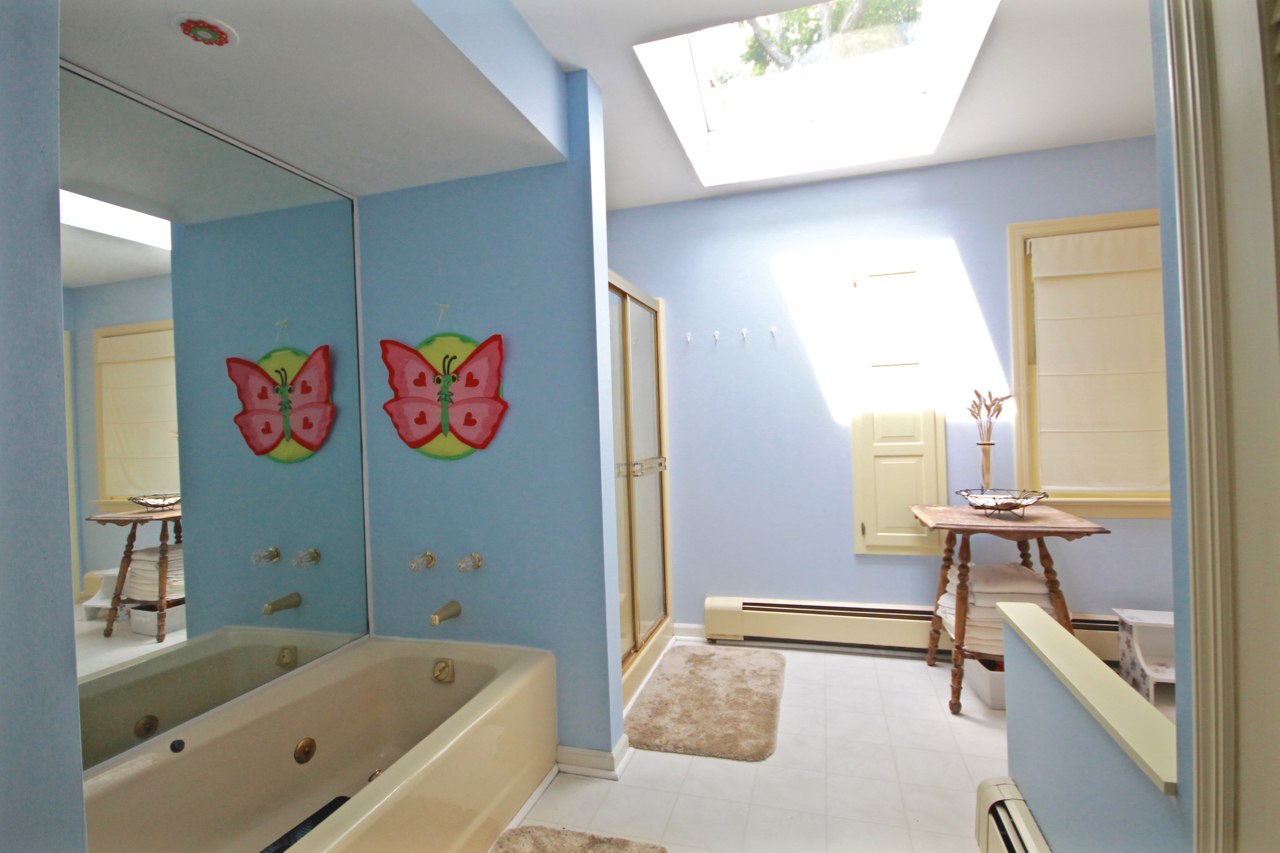 Huge main bathroom has tub/shower, shower stall, laundry, double vanity and (my personal favorite) a big skylight in the center provides plenty of natural light.