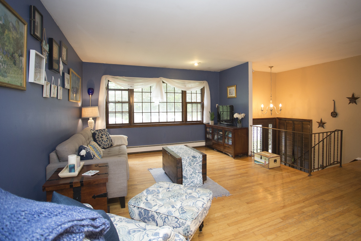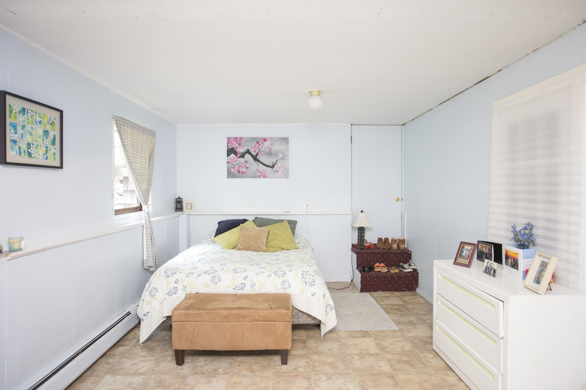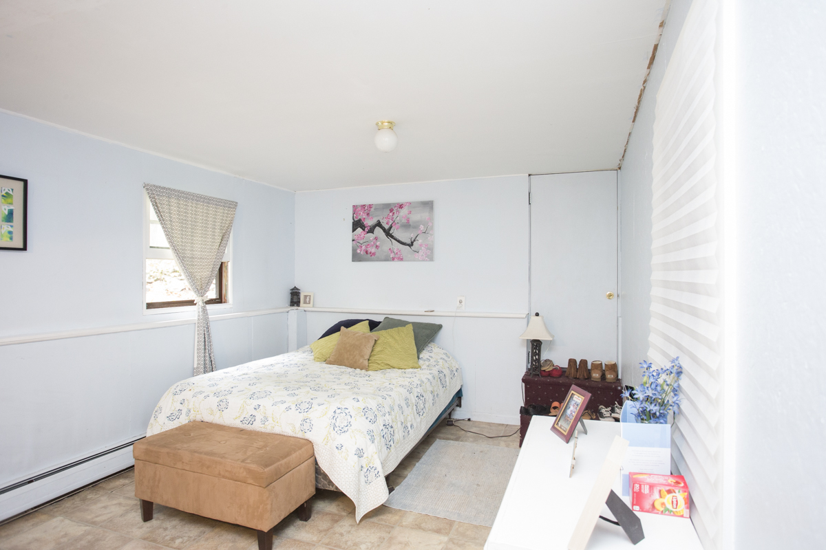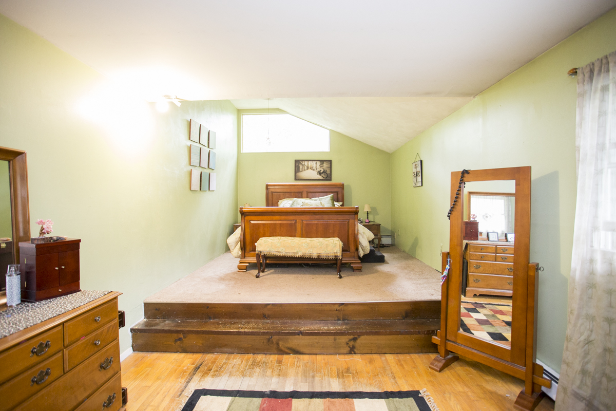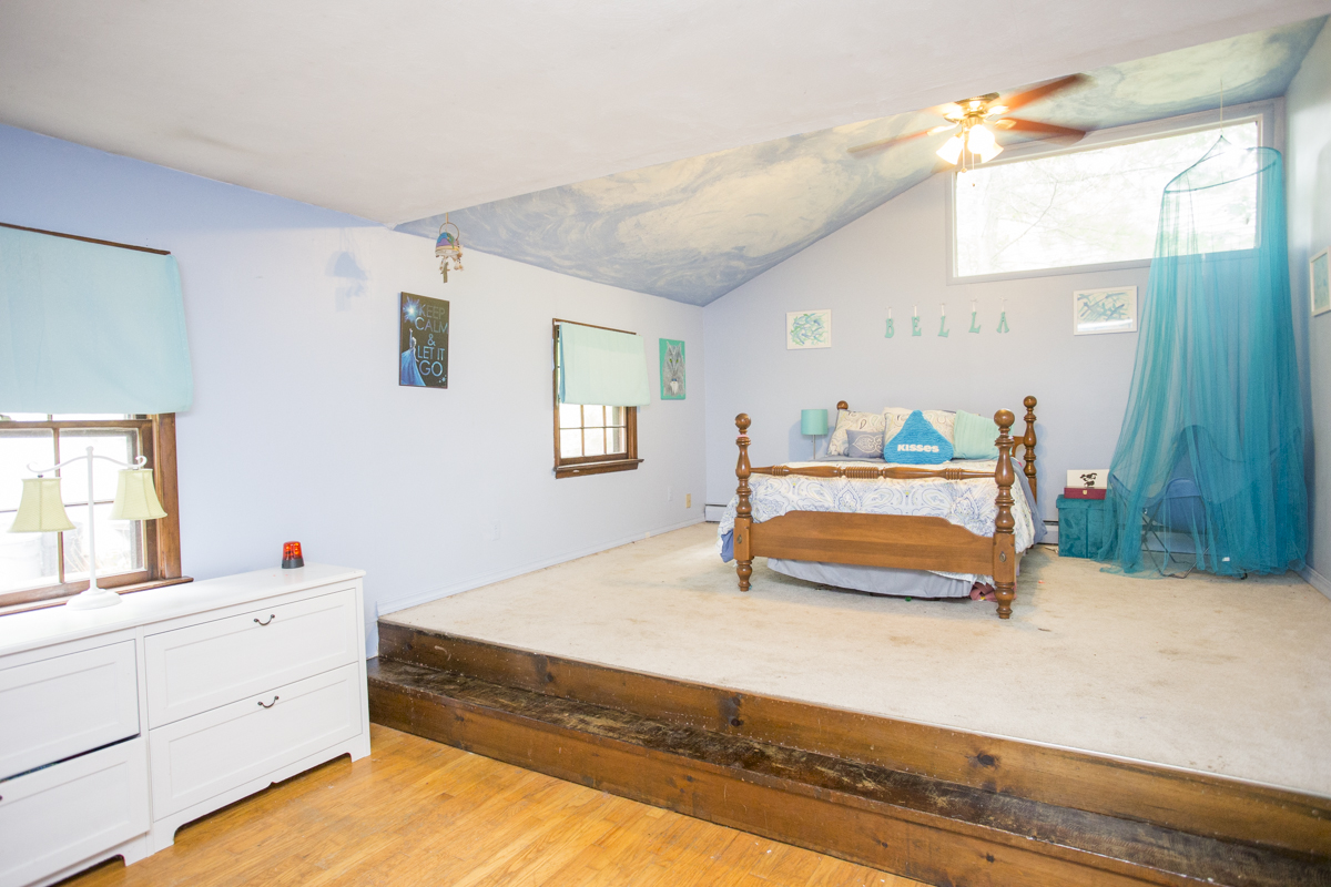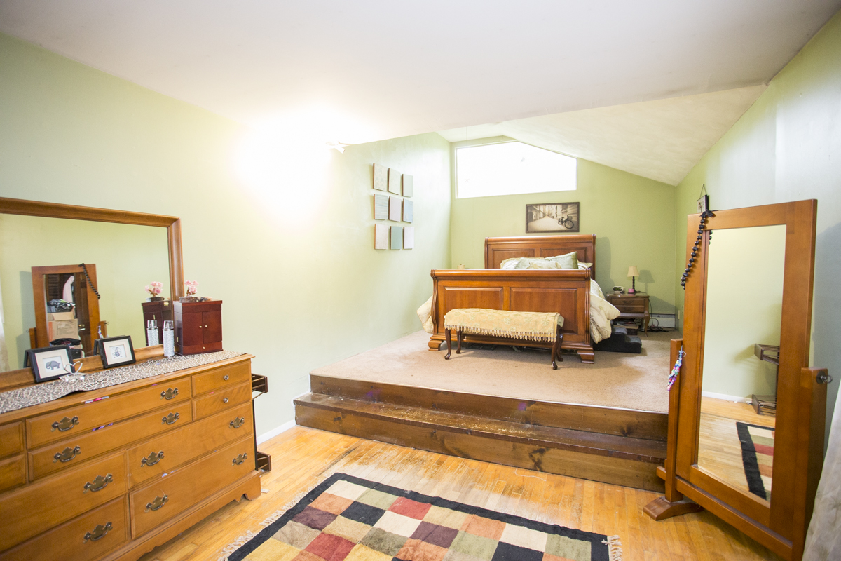 Bedroom number two is large and features a vaulted ceiling, plenty of natural light and a dynamic two-level layout.