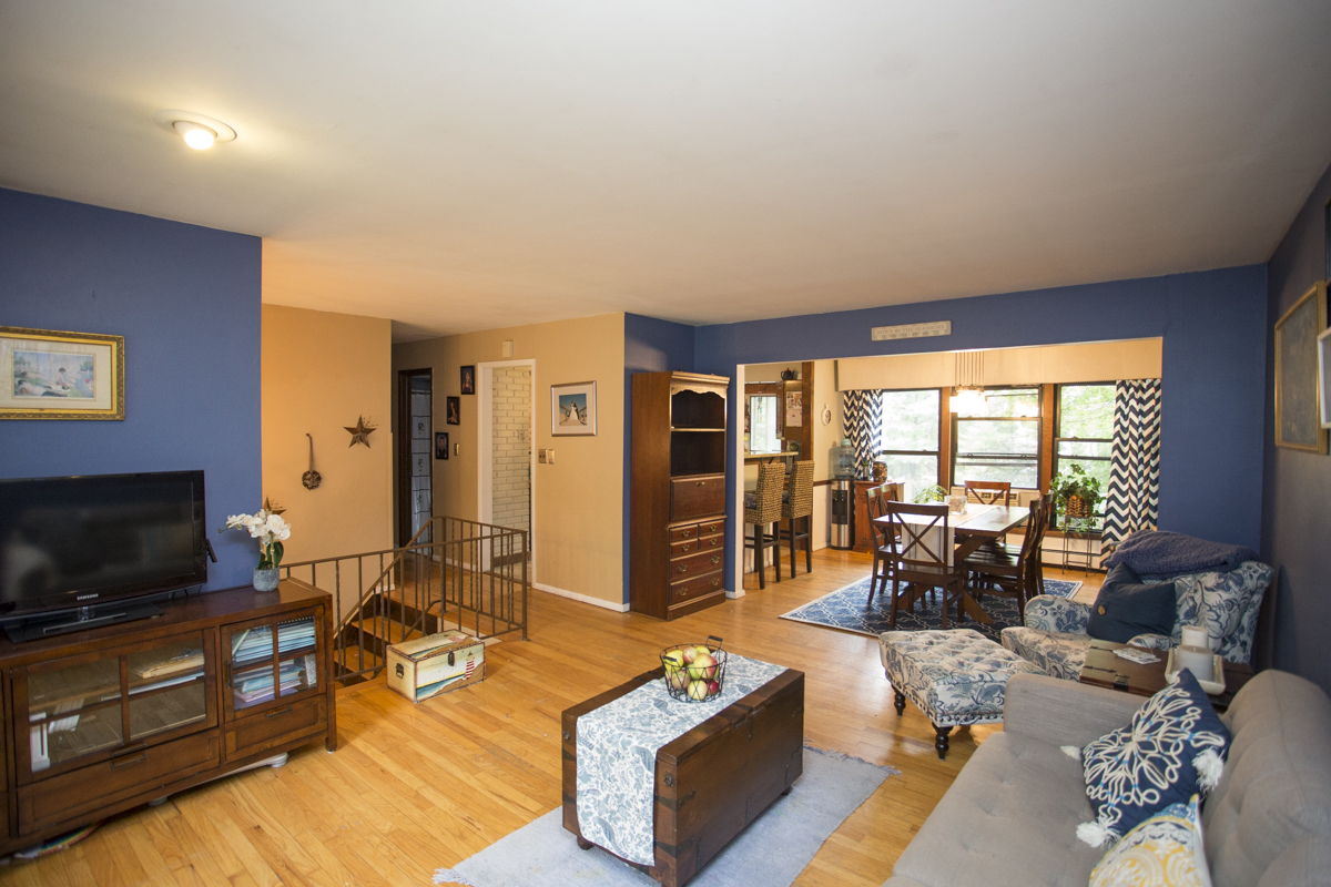 Inside you’ll find ample wood flooring and an open, airy floor plan! The entry area, living room, dining room and kitchen are all open to each other and make for a great entertainment space.