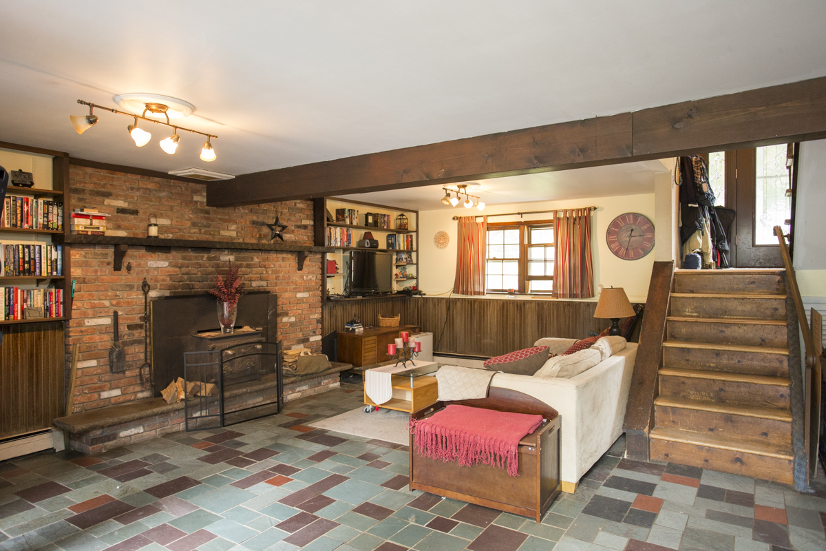 Let’s head downstairs! The lower level family room is both spacious and cozy! Just imagine yourself curling up next to the the wood burning fireplace and big brick hearth on a cold winter’s day.