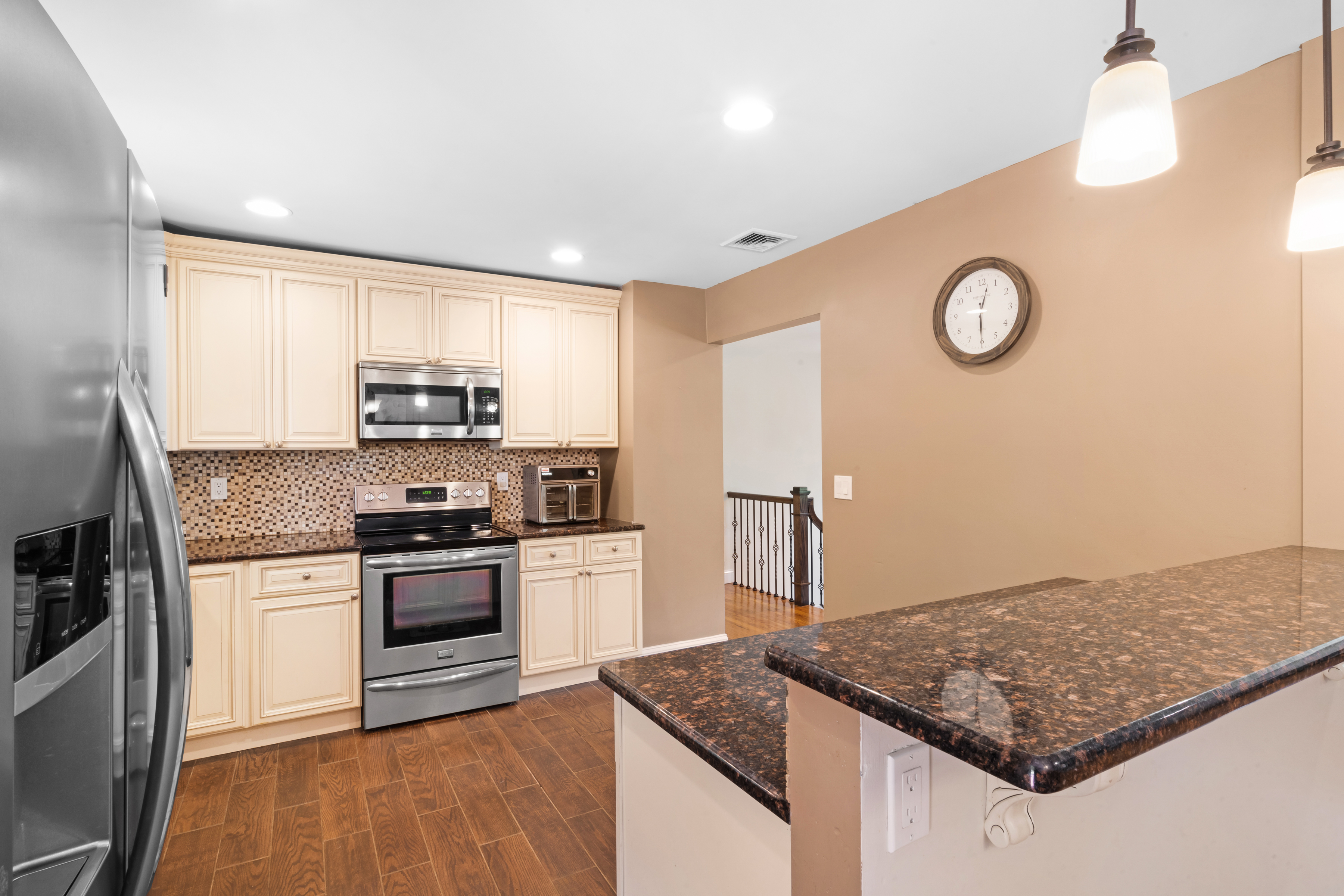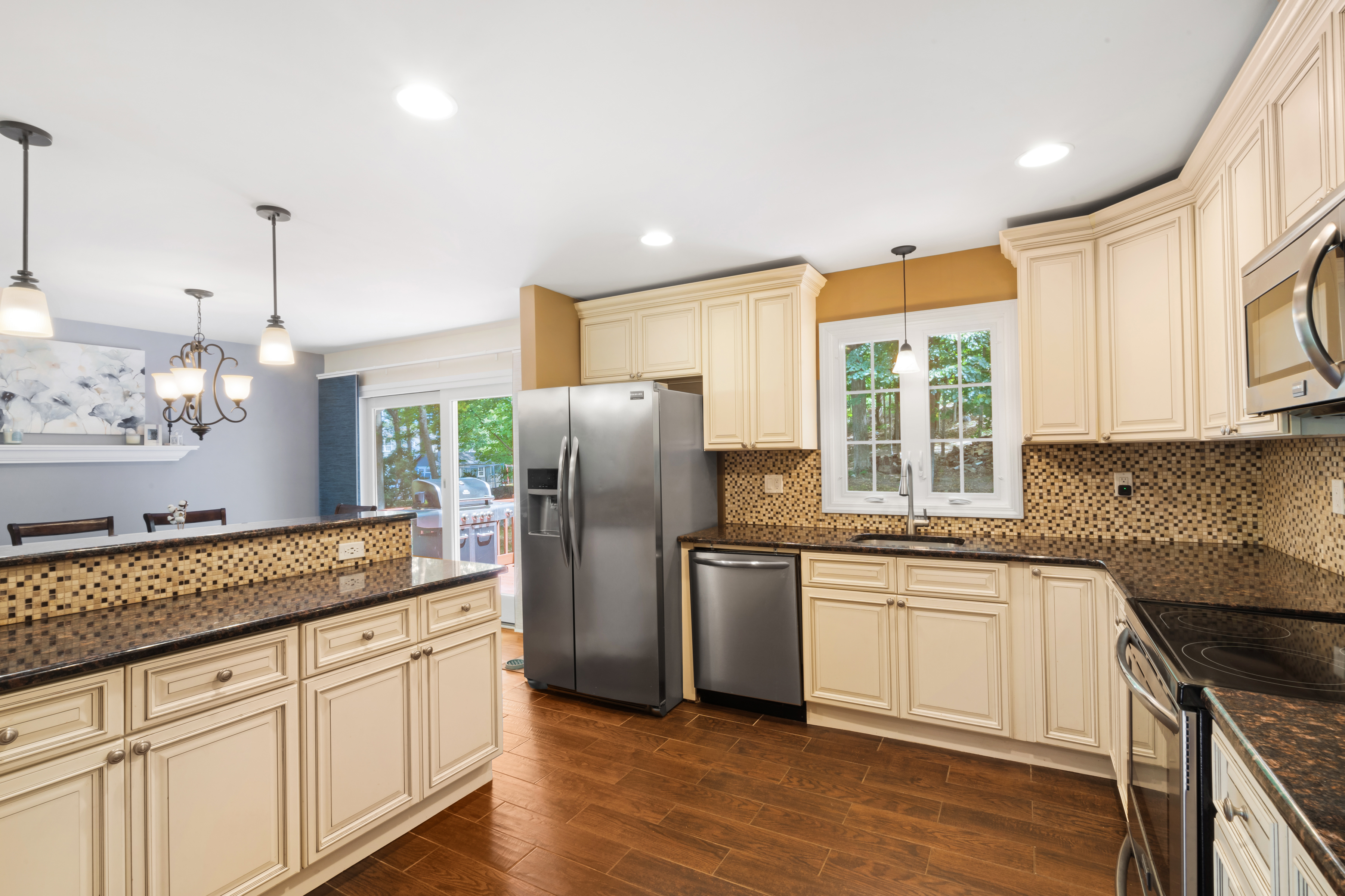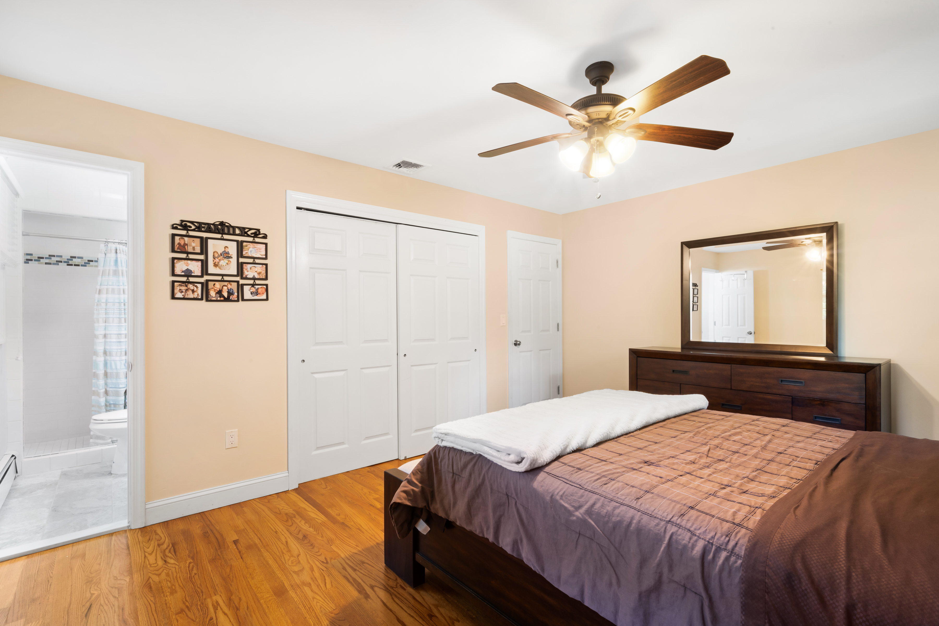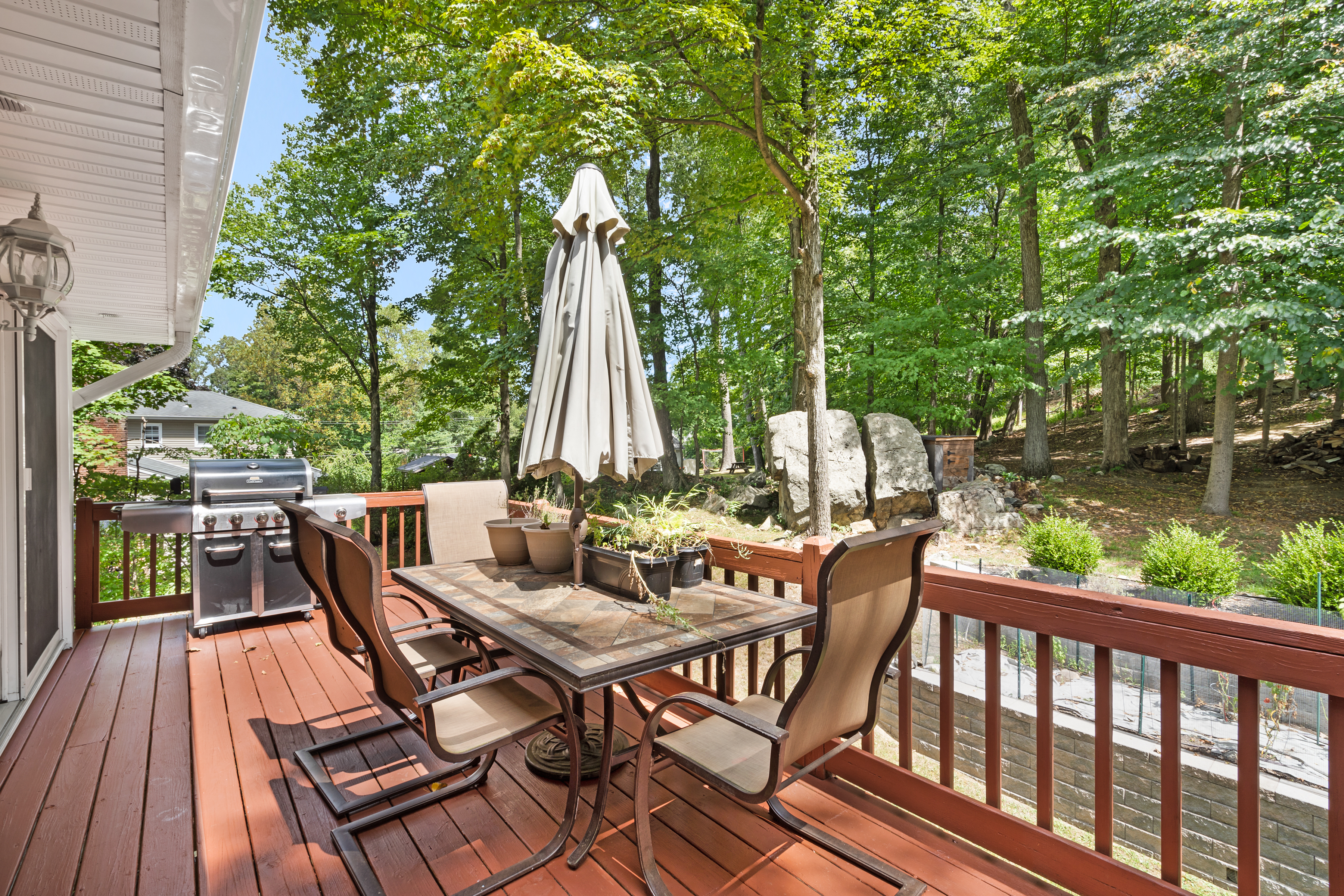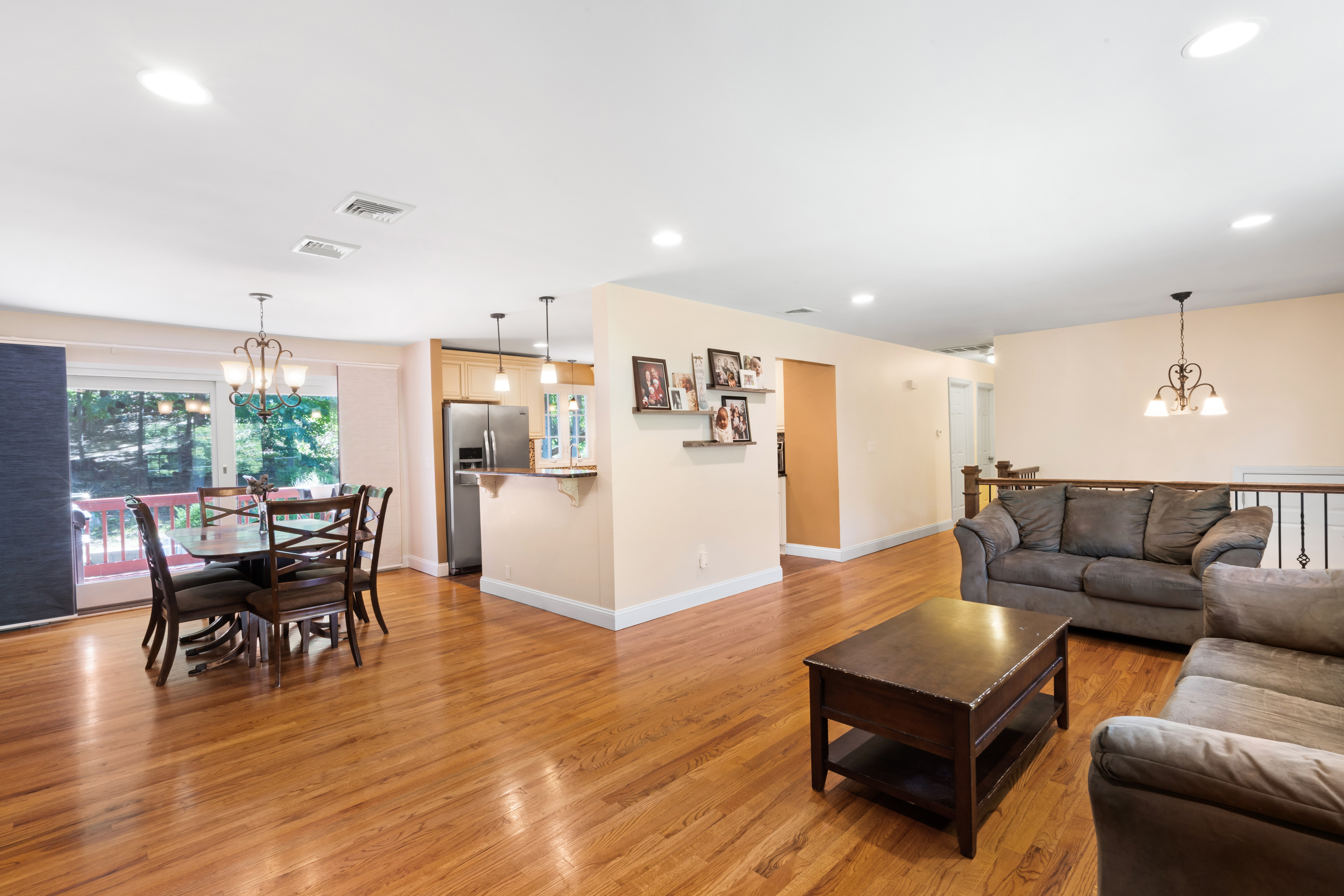 Step inside to find hardwood floors throughout the main level, an updated kitchen perfect for entertaining, a bright and spacious living room, and a dining area that leads to a freshly painted deck. This level also features three bedrooms, including a generous primary suite with its own full bath.