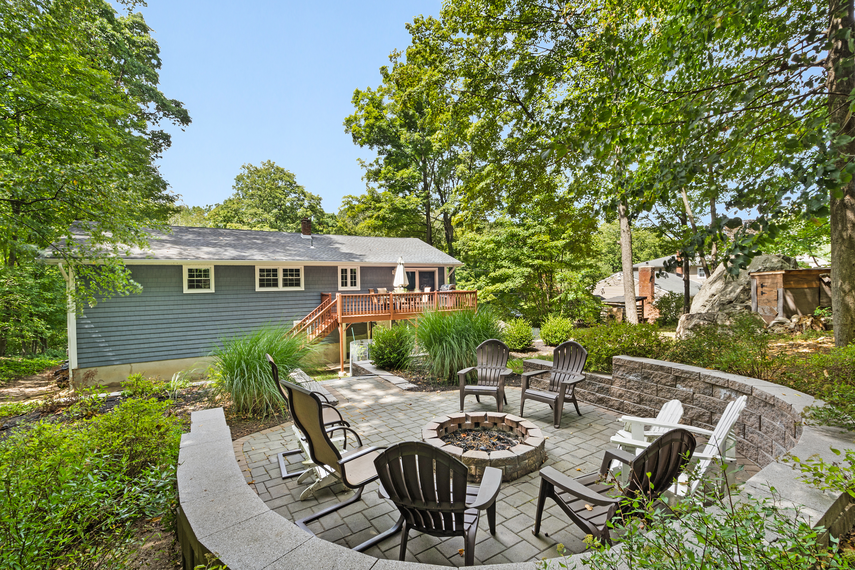 Outside, unwind in your own private oasis complete with a newer patio, retaining walls, and a built-in firepit (2018) perfect for entertaining or quiet nights under the stars.
