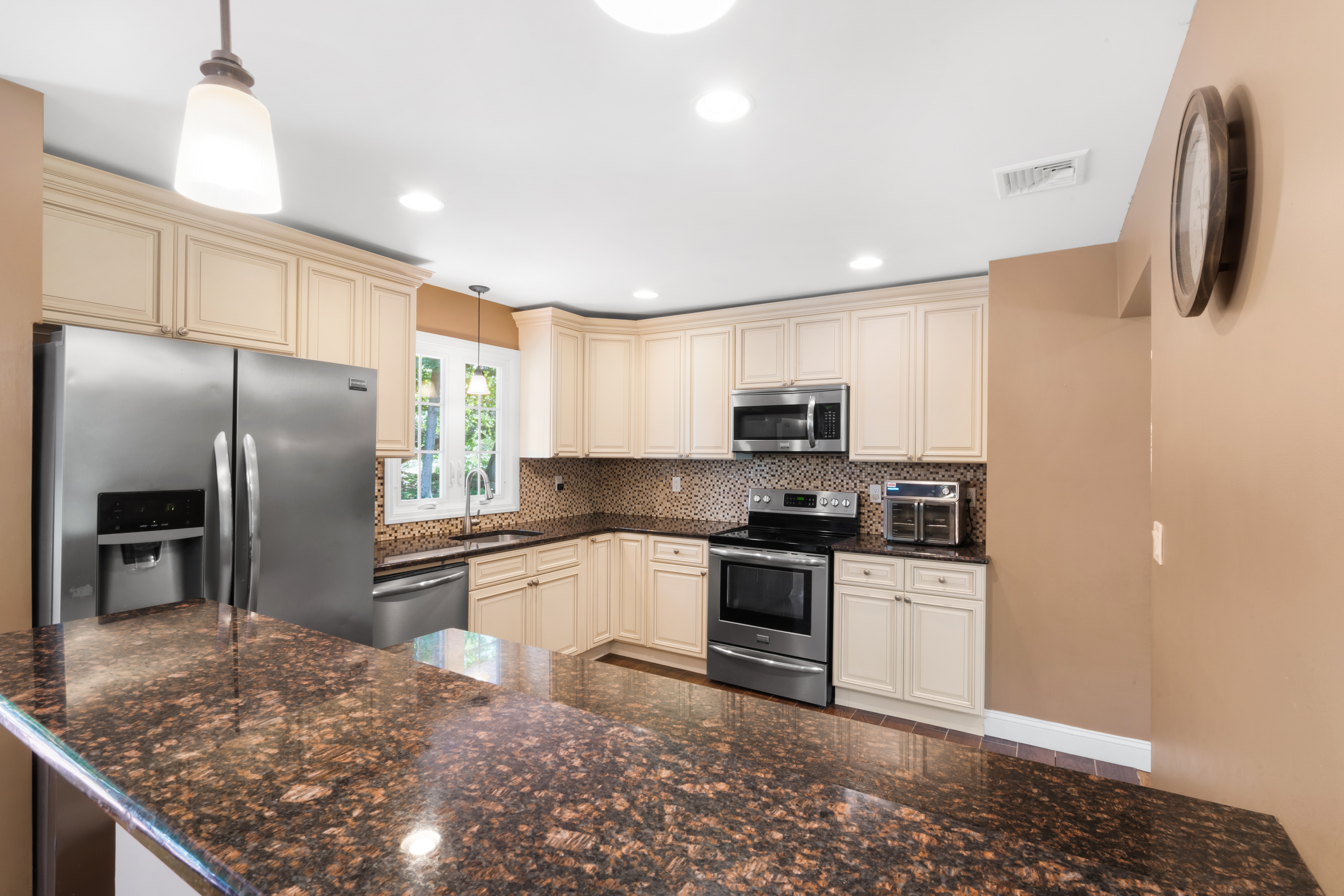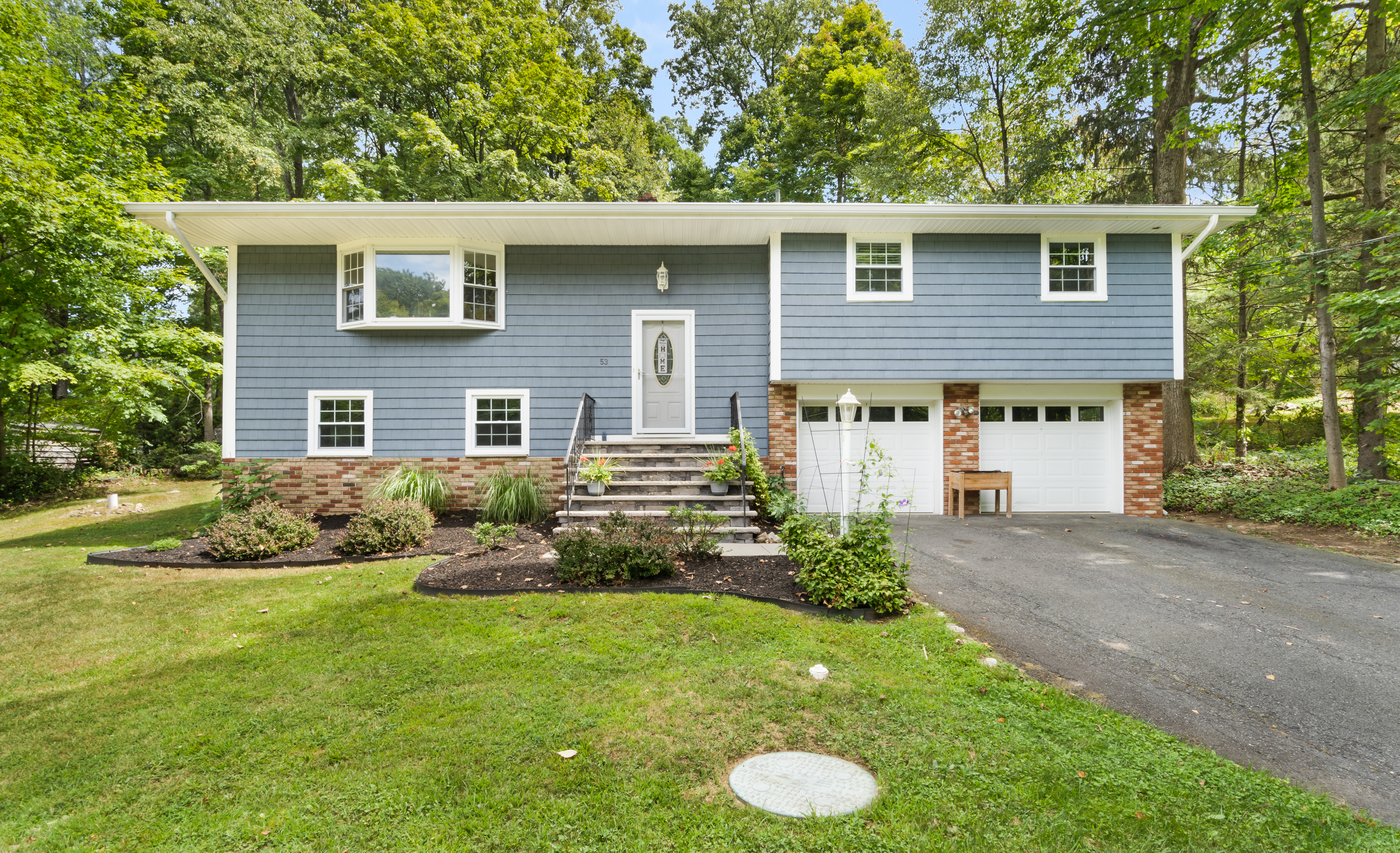 The lower level offers fantastic additional living space with a family room, powder room, fourth bedroom, laundry room, storage closet, and direct access to the garage. Significant upgrades include new siding, windows, roof, and central air (2015), ensuring comfort and peace of mind for years to come.