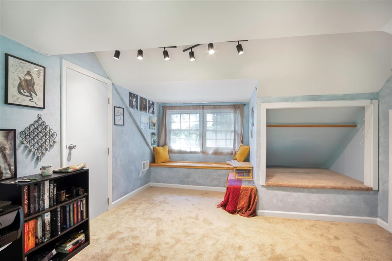 The second level features the primary bedroom with dressing room, full bathroom, and second bedroom with sitting room/office or use as a spare bedroom. The third floor is highlighted by two unique rooms, each with its own access stairwell, one is a bedroom w/ a hidden room, and the other is a whimsical crow’s nest accessible through a hidden stairwell with original built-ins!
